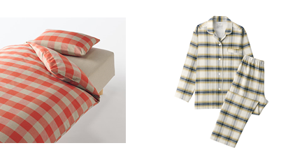 根強い人気素材の綿を100%使用した「綿フランネル」は、綿生地に起毛をかけ、ふんわりしたあたたかな肌触りに仕上げました。毎年好評の定番アイテムですが、今季展開するチェック柄は秋冬らしい表情が特長です。