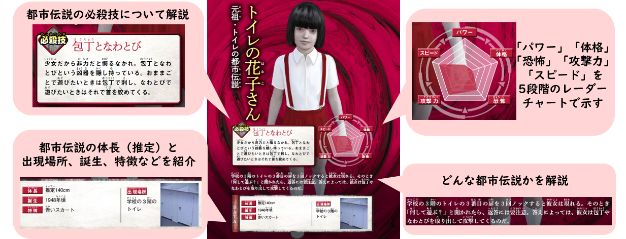- ゲーム感覚で都市伝説の性質と能力を知ることができる!