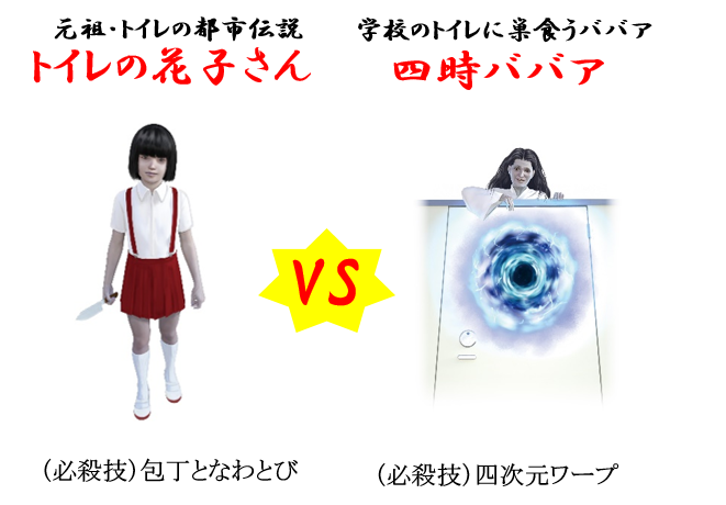 ・四時ババア…夕方4時になると小学校のトイレに現れる。5時までの1時間はトイレに近づかないほうがよい。