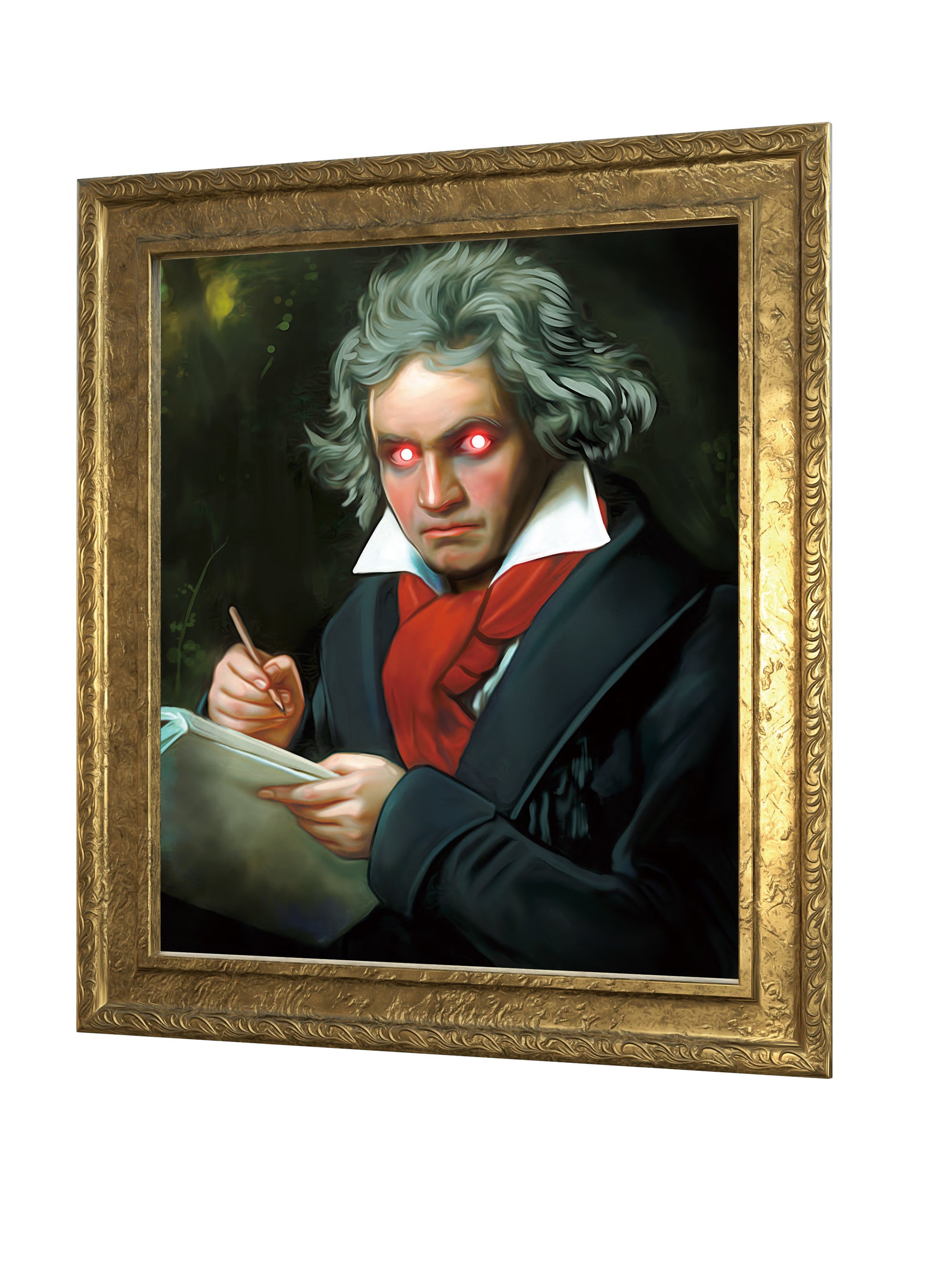 ③モナリザの怪は絵から上半身を乗り出し、ベートーベンに嚙みつき殴り倒した!