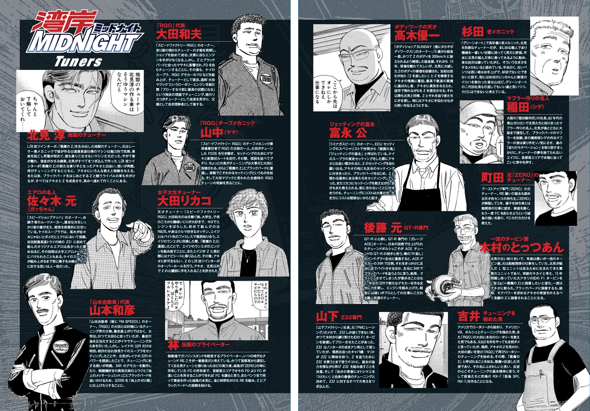 作品に登場する主人公「朝倉アキオ」「ブラックバード(島 達也)」、「レイナ」の主要キャラクター3人を各1枚ずつクリアファイル化し、クリアファイルを挟み込む表紙を含む8ページの小冊子には主人公アキオの「悪魔のZ」と交錯する湾岸ランナーとクセのあるチューナー達のキャラクター紹介、さらに湾岸ミッドナイトならではのチューナー達の「妙に響く」名セリフ集を収録しています。