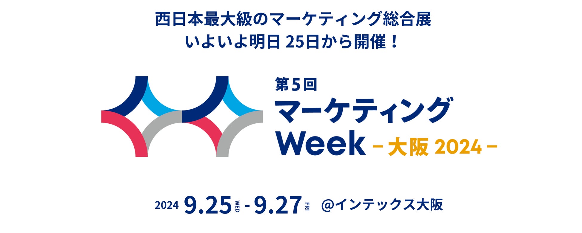 2024年9⽉25⽇(水)〜27⽇(金)の3⽇間、 RX Japan株式会社(本社:東京都中央区、代表取締役社⻑:⽥中 岳志)は、西日本最大級のマーケティング総合展「第5回 マーケティングWeek -大阪 2024-」をインテックス大阪にて、開催いたします。