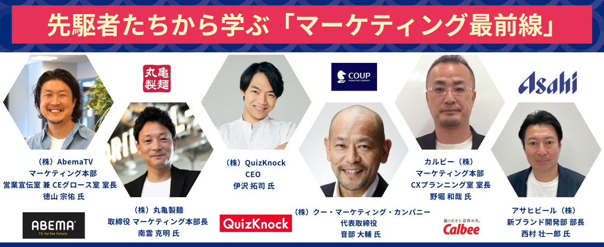 QuizKnock 伊沢氏、丸亀製麺 南雲氏、クー・マーケティング・カンパニー 音部氏、など有力企業のマーケティングを牽引する講師が連日登壇。