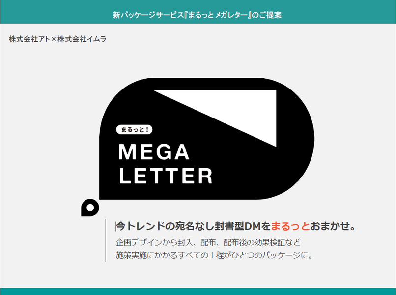 主流のA4サイズのチラシ以外にも、様々な仕様のポスティング広告(R)が増えている中、今のトレンドは「宛名なし封書型DM」です。 企画・制作・印刷・封入から配布オペレーション、実施後の効果測定分析まで一気通貫でサポートするお得なパッケージです。