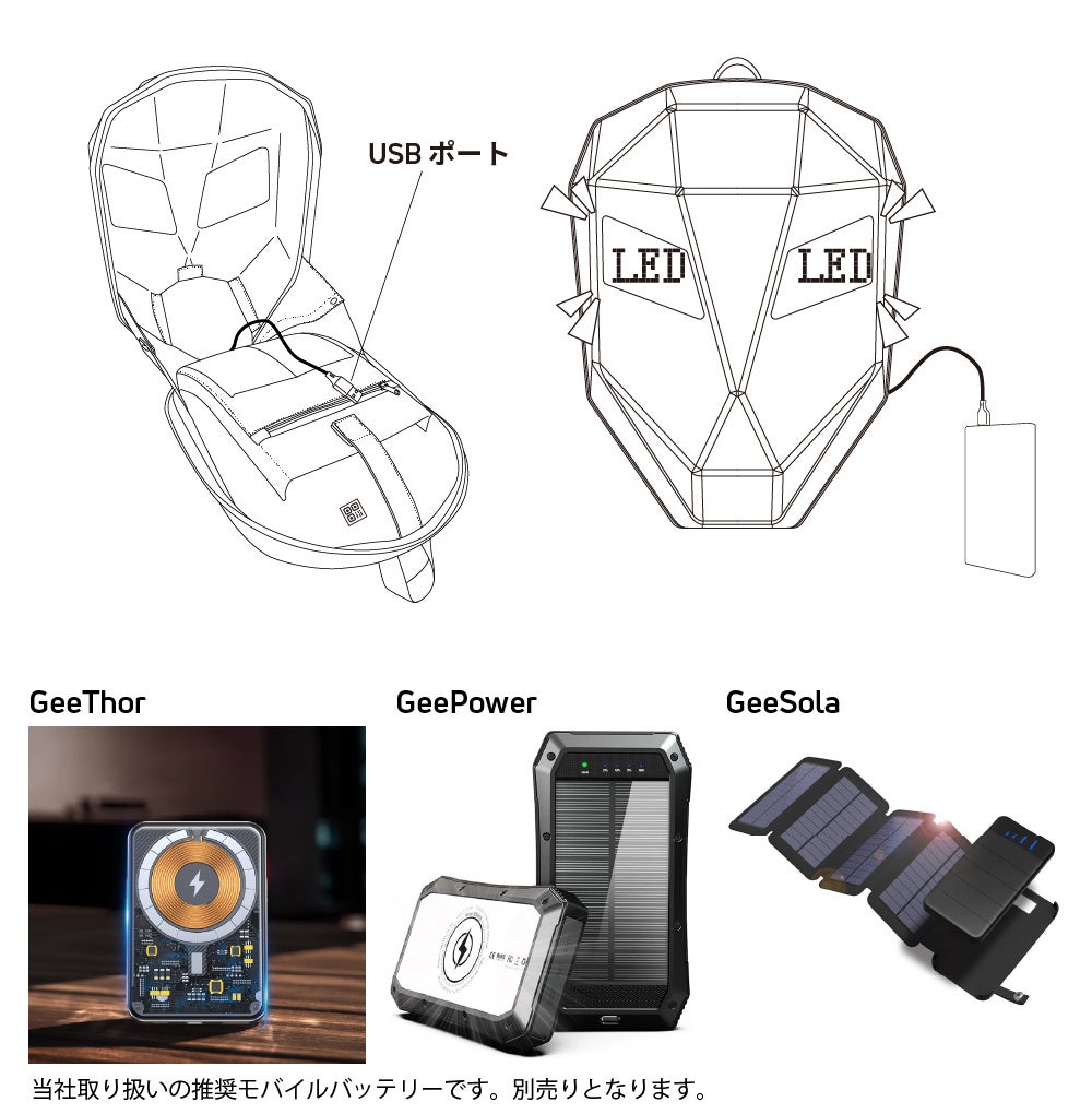 暗闇でLEDの目が光る、未来的なバックパック「GeeKnight」をガジェットストア「MODERN g」で販売開始