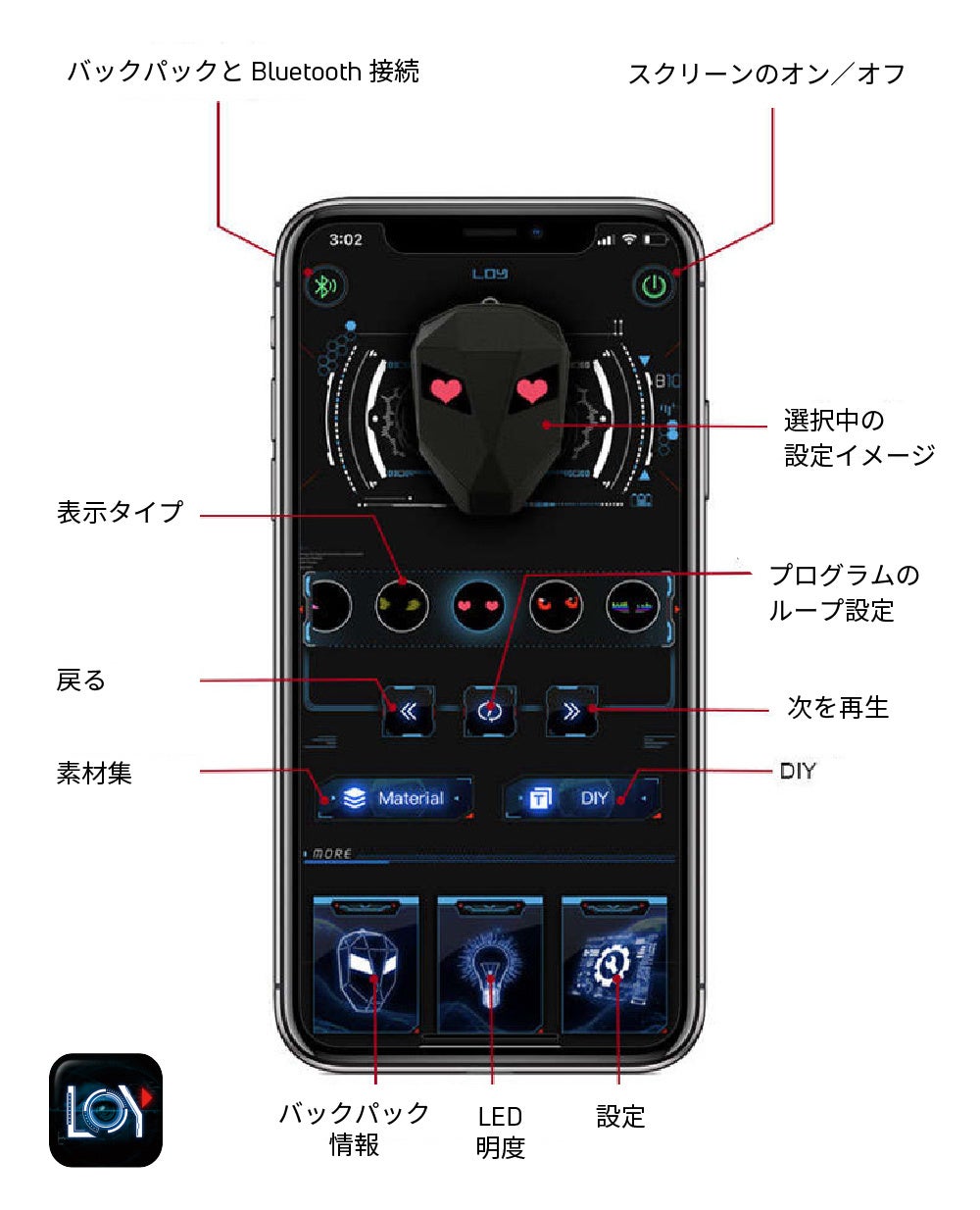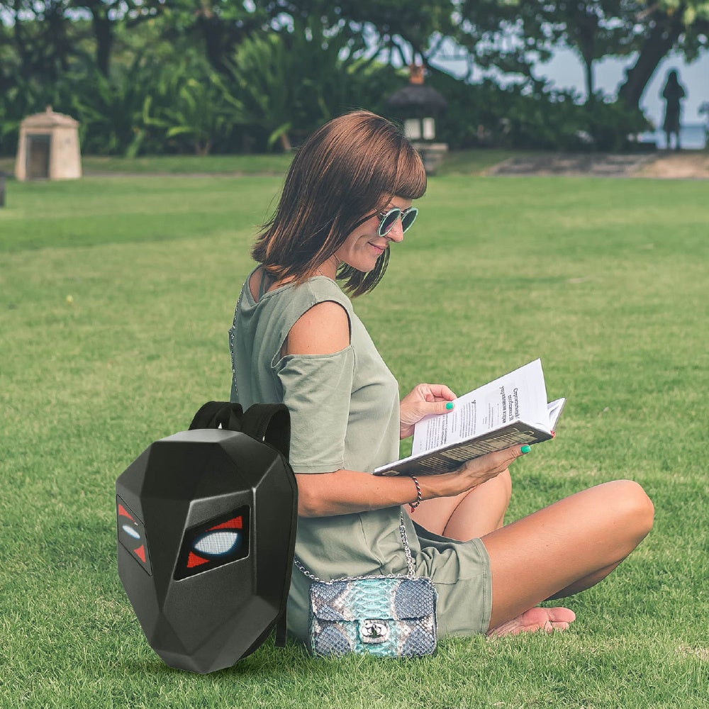 スマホアプリでLEDを自在にカスタマイズ/アニメーションやテキストを表示/大容量/盗難防止ポケット付/夜道の安全に