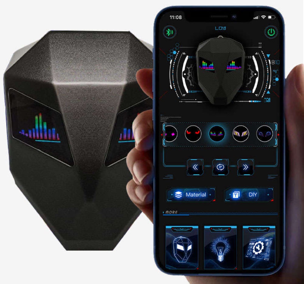 ●ふたつの目に色やテキスト、画像などをアプリ設定できるLED照明