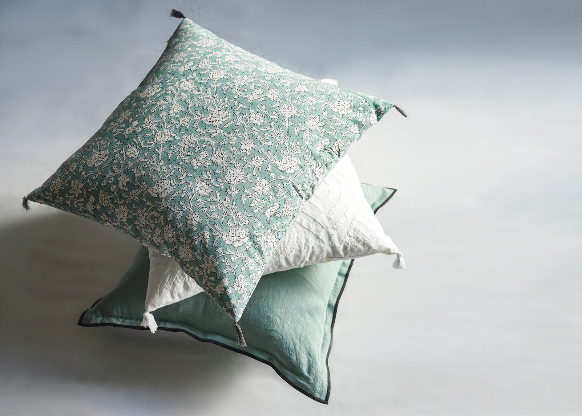 インドの伝統的な技法「ブロックプリント」を用いたファブリックシリーズ。「ブロックプリント」とは、木彫りの版にインクをつけ、布に押し当てて柄を表現する技術です。カラフルで複雑な柄ほど、幾層にもインクを重ねて仕上げます。木版ならではのかすれや微妙なズレが生み出す独特の風合いは、デジタル技術では再現できない、手仕事ならではの魅力と言えるでしょう。