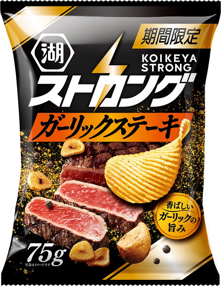 本格的な味わいで高満足な年末のご褒美!「湖池屋ストロング ガーリックステーキ/炙り辛子明太」新発売 -あなたの“推しストロング”が3箱当たるキャンペーンも実施!-