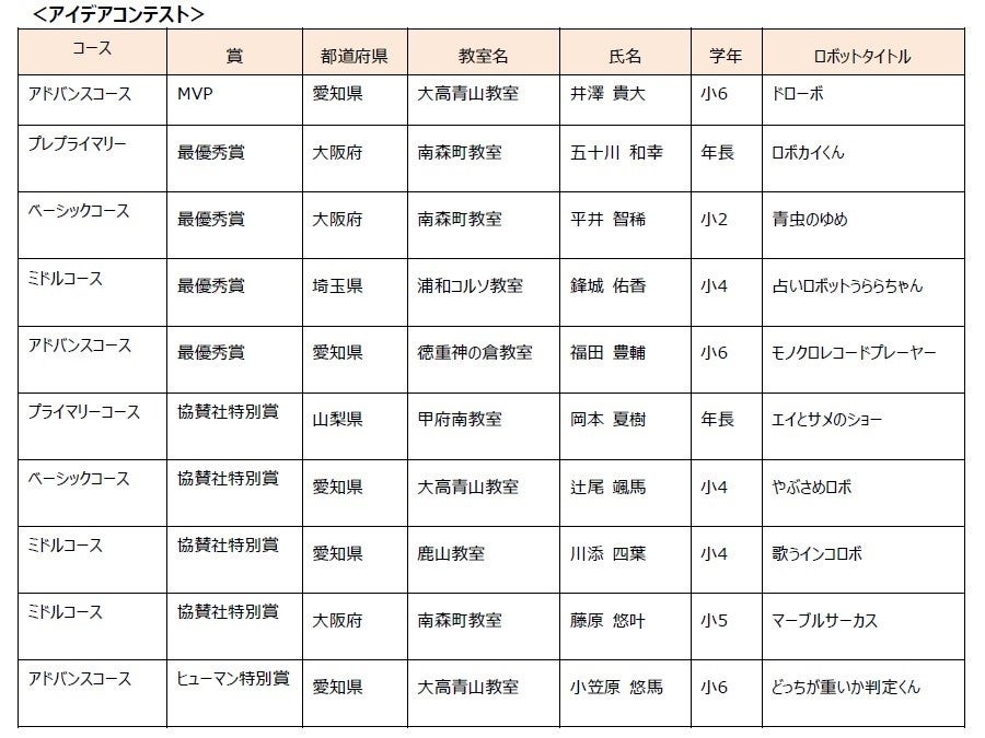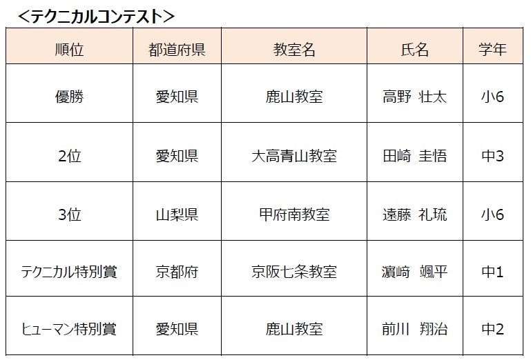 出場者:日本国内の予選審査を通過した「ヒューマンアカデミーロボット教室」の生徒