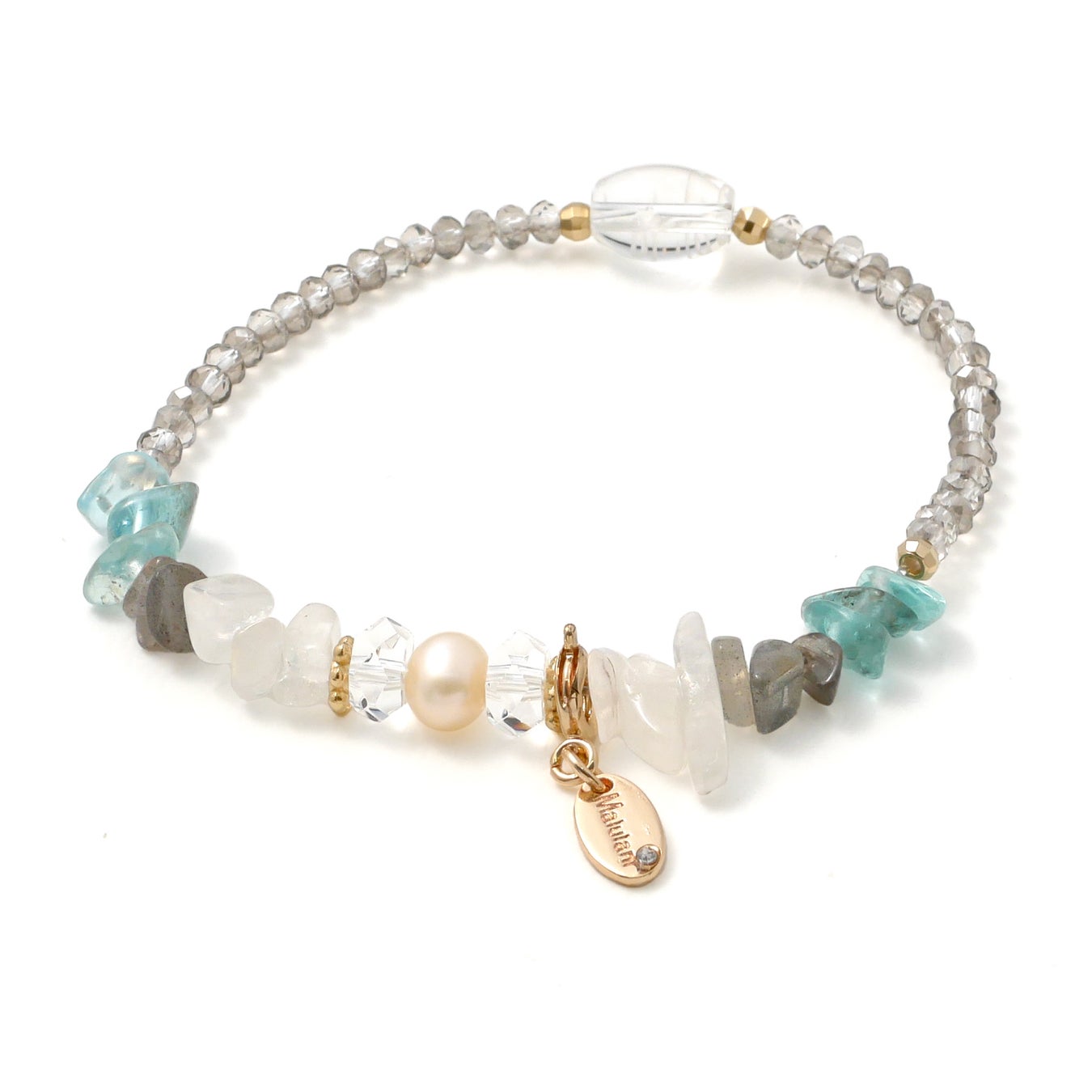 ムーンストーンやアパタイト、ラブラドライトなど、静寂に包まれた冬の風景をイメージし、淡く澄んだ輝きを放つ天然石を厳選。