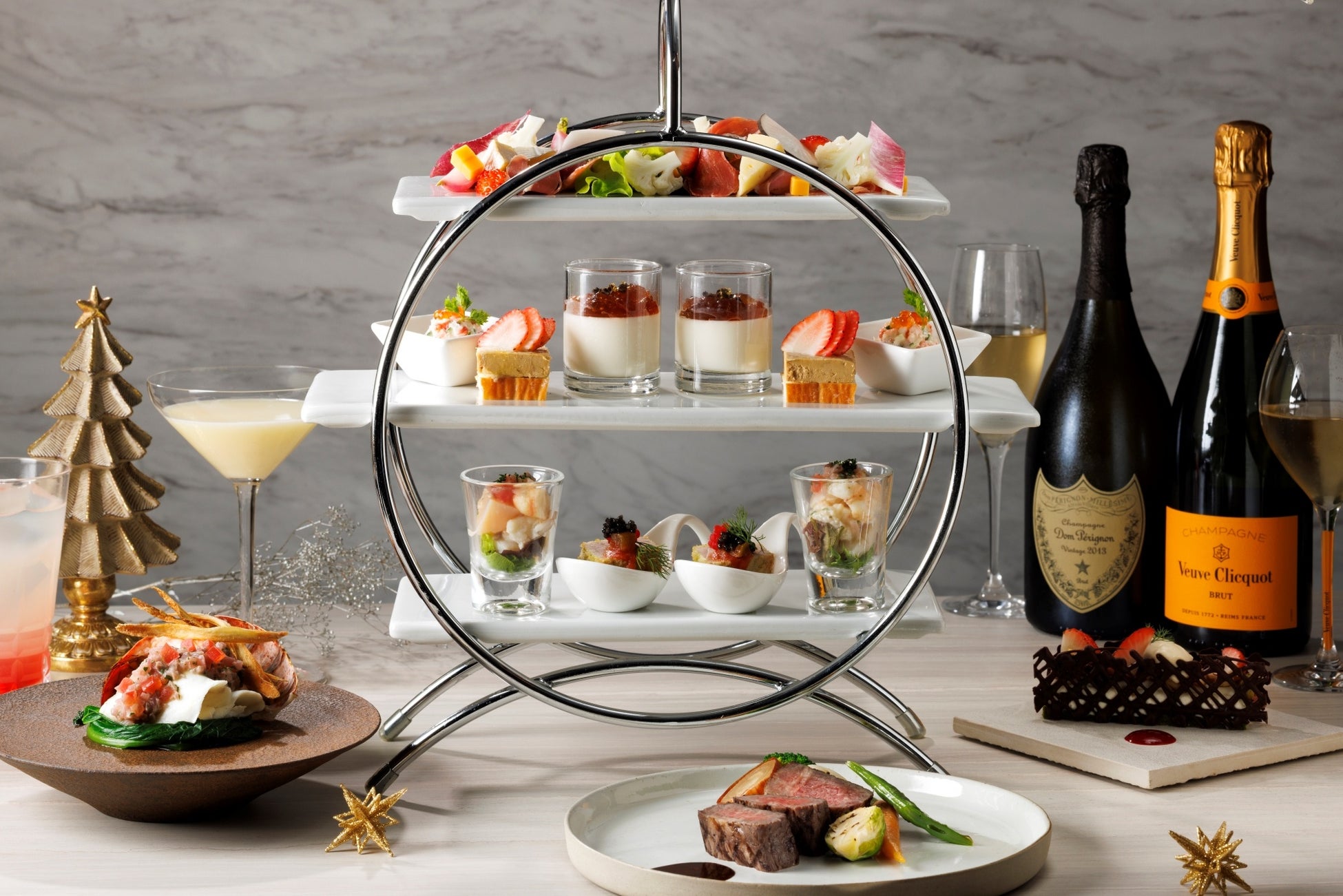 クリスマス限定のイブニングハイティー。プレステージシャンパン 「ドン ペリニヨン」で乾杯した後は、フリーフローで爽やかな飲み心地のシャンパン 「ヴーヴ・クリコ」や6種のカクテルに合わせたセイボリーをご提供。スタンドにはフォアグラテリーヌなど前菜6種。魚料理には白ワインの風味がオマール海老と平目を引き立てる一品をご用意。肉料理には、黒毛和牛のグリルをお楽しみいただきます。