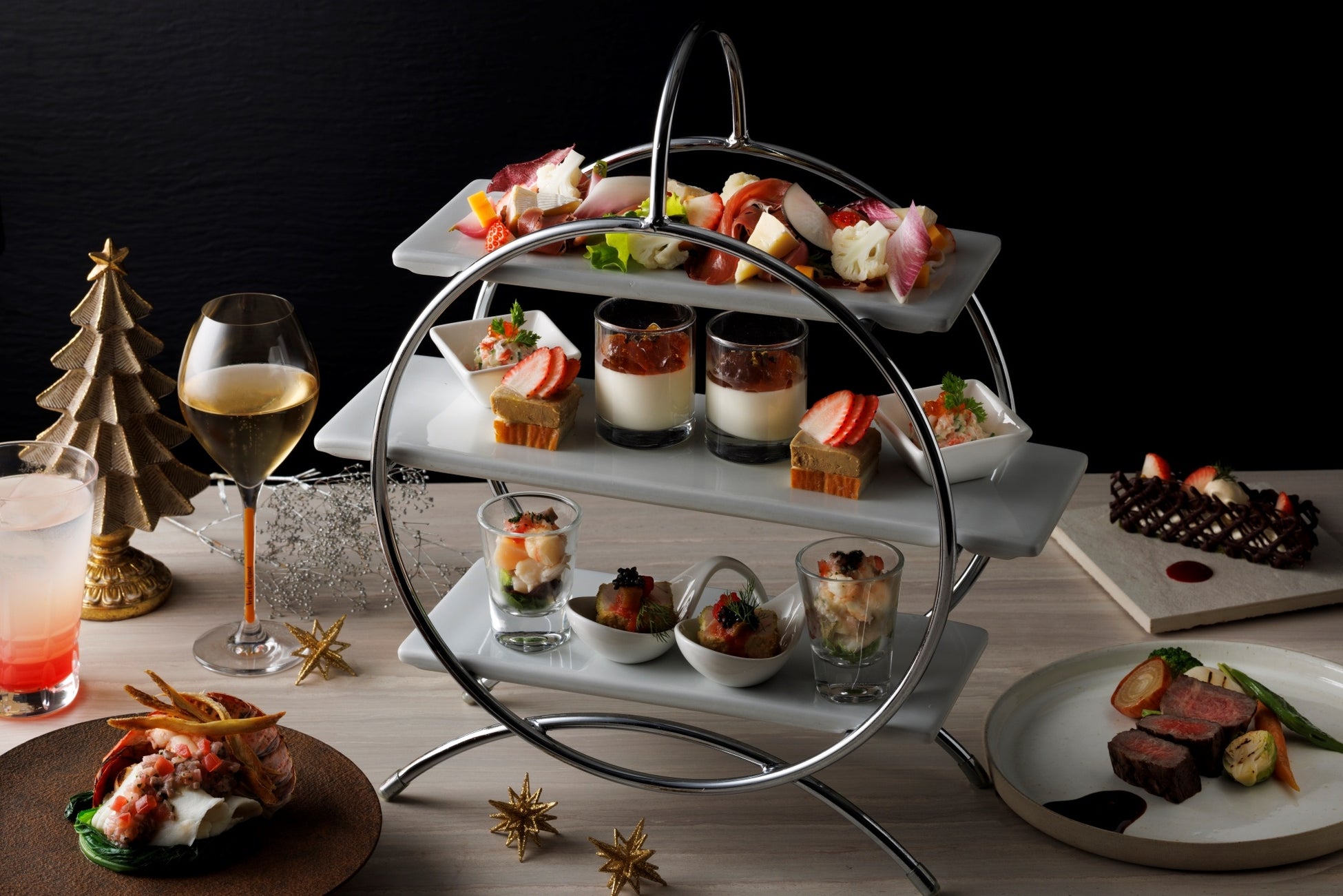 今回は、クリスマスの神聖さを「白」、煌びやかな演出に「金」、情熱的な愛を「赤」で表現し、3色のカラーを随所に取り入れ、オマール海老やフォアグラなど贅沢な素材を用いた珠玉のお料理をお届けいたします。ホテル最上階の「Bar19(バーナインティーン)」では、シャンパンとのマリアージュが楽しめるイブニングハイティーをご用意。シャンパンの王様とも呼ばれる「ドン ペリニヨン」で乾杯後、フリーフローでご提供するシャンパン「ヴーヴ・クリコ」やオリジナルカクテルに合わせ、前菜や魚料理、肉料理などのセイボリーをご賞味いただきます。同じく最上階の「鉄板焼き 一花一葉」では、2種類のディナーコースをご用意。カウンターならではの、シェフのダイナミックな手さばきや鉄板から立ち上るオマール海老や松阪牛の香り、音などを楽しみながら至福のひとときを味わえます。また、お食事後に会場を変更し、プチデザートブッフェをゆっくりと堪能できるのもこのコースの魅力のひとつです。ロビー階の「Dining & Bar LAVAROCK (ダイニング & バー ラヴァロック)」では、トリュフやキャビア、フォアグラ、オマール海老など贅沢な食材をシェフの創意溢れる料理でお届け。アメリカングリルレストランが表現する繊細で斬新な料理をお楽しみください。