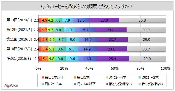 マイボイスコム株式会社(東京都千代田区、代表取締役社長:高井和久)は、13回目となる『缶コーヒーの利用』に関するインターネット調査を2024年3月1日~5日に実施しました。