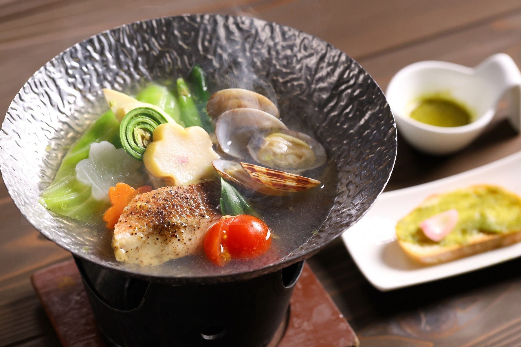 春の和風イタリアン鍋~木の芽味噌バゲット添え~
