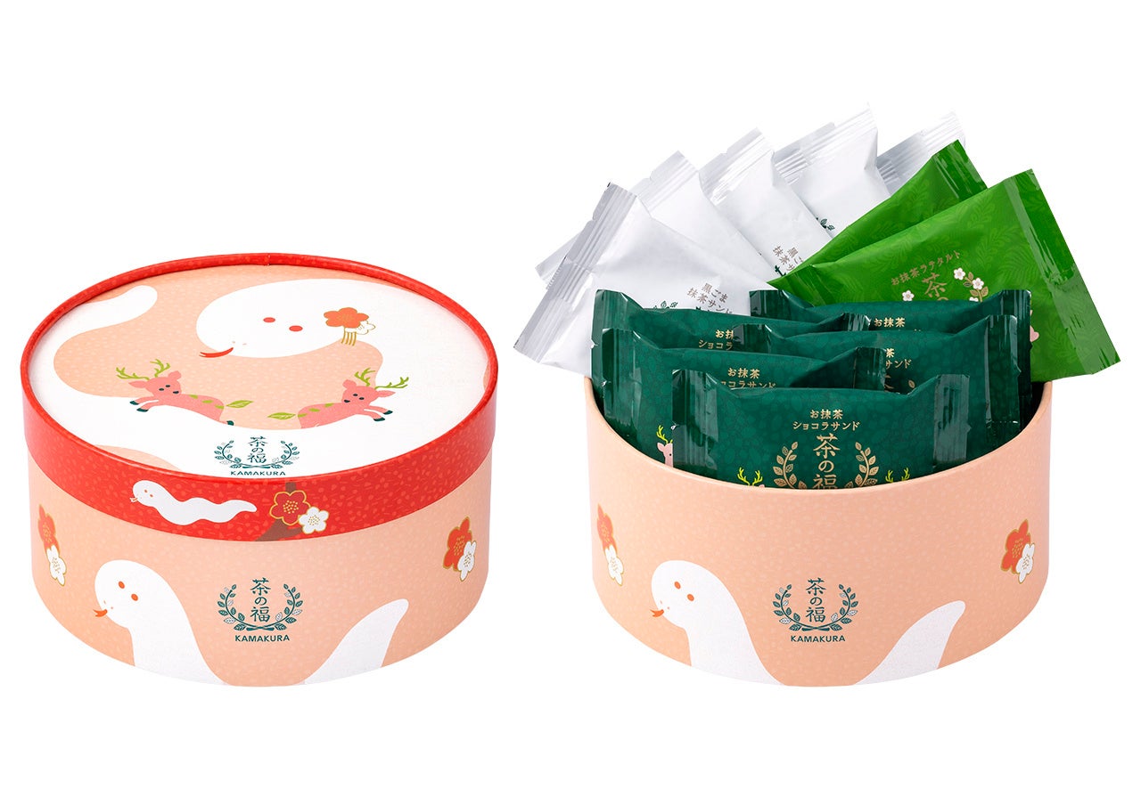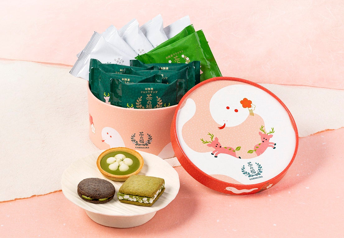 鎌倉の抹茶スイーツ専門店「茶の福」から『巳年福箱』新登場!縁起の良い茶菓を運ぶ、ゆるかわ“しろへび”デザイン