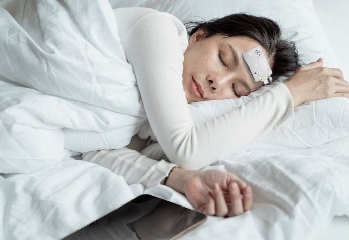 パッチ式脳波計で睡眠時の脳波を計測できます。高精度かつ小型ワイヤレスなパッチ式脳波計により自宅でも利用可能です。