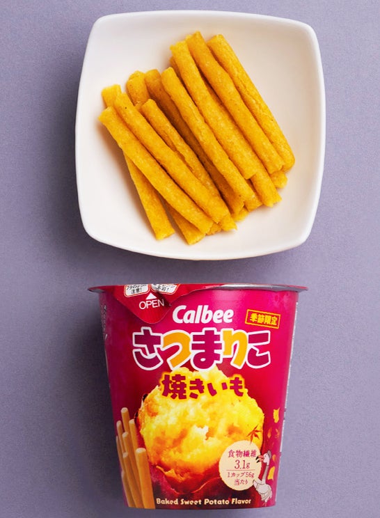 さつまいも本来のおいしさを、「じゃがりこ」独自の食感で味わえます。まるで焼きいもを食べているような香ばしさと甘さに仕上げました。一目でわかるさつまいも色の紫パッケージには、甘くねっとりした焼きいもの断面を大きく掲載し、紫と黄色のコントラストが映えるデザインにしました。