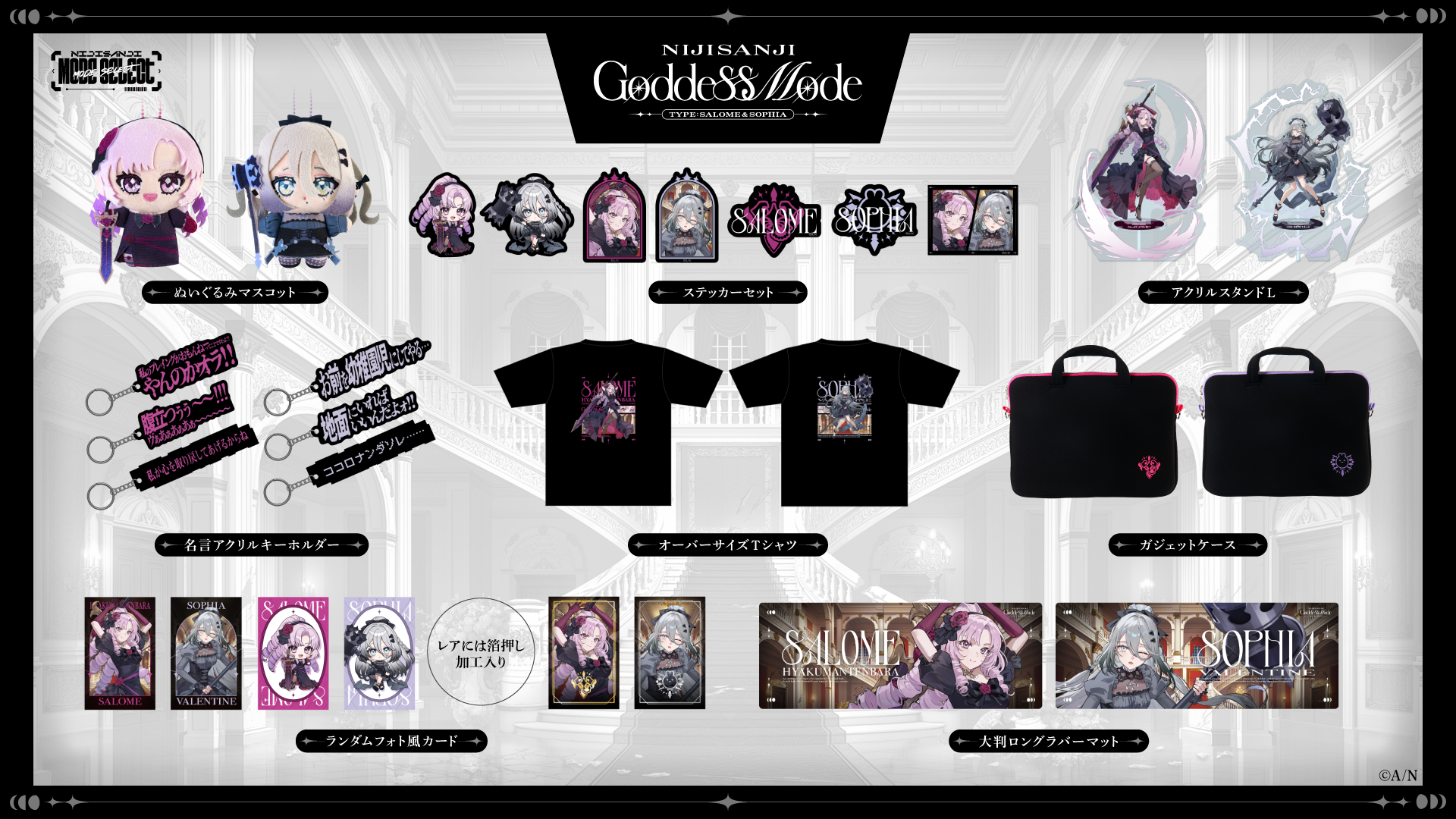 にじさんじから「NIJISANJI Goddess Mode Type:Salome&Sophia」グッズが登場!2026年3月27日(金)18時から販売開始!