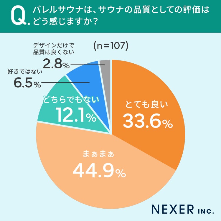 続いてバレルサウナについて、サウナの品質についての評価を聞いてみました。