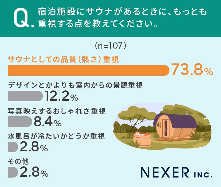 【バレルサウナに求めることは?】入ったことがある73.8%が「サウナとしての品質」を重視したい
