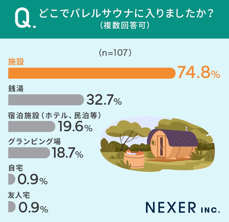 そこで今回は株式会社MySaunaと共同で、事前調査で「バレルサウナに入ったことがある」と回答した全国の男女107名を対象に「バレルサウナ」についてのアンケートをおこないました。