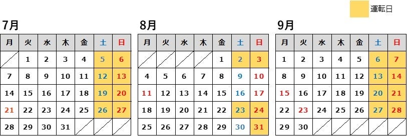 2025年7月5日(土)~9月28日(日)の間の土日 【各日1往復運行】