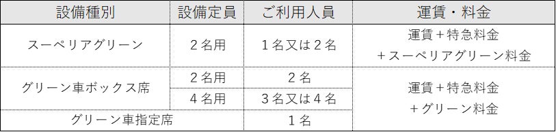 設備種別ごとに必要な運賃・料金は次のとおりです。