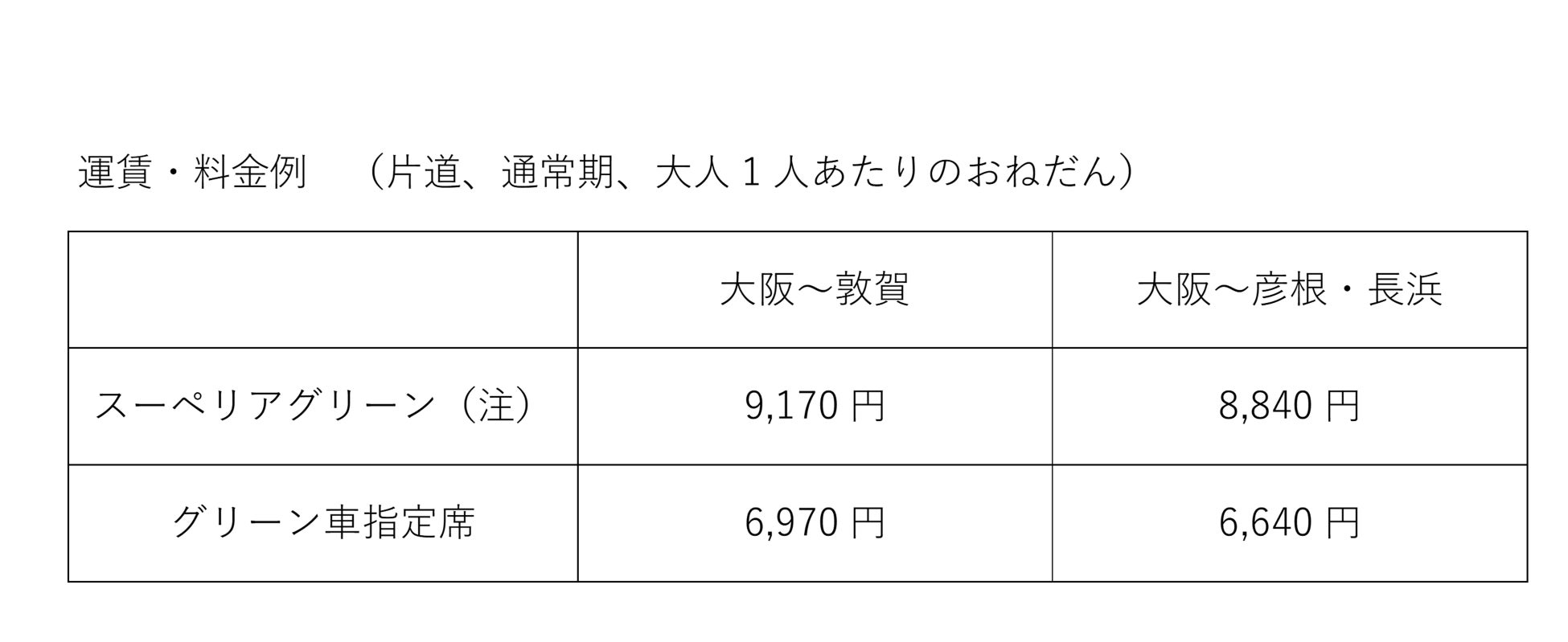 <参考> 運賃・料金例 (片道、通常期、大人1人あたりのおねだん)