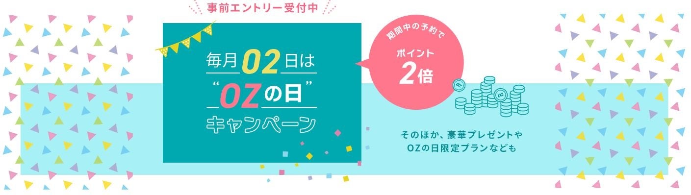 毎月02日は「OZの日」! 事前エントリーで500円クーポンをプレゼント。「OZの日特別プラン」やエントリーでポイント2倍、プレゼント企画も