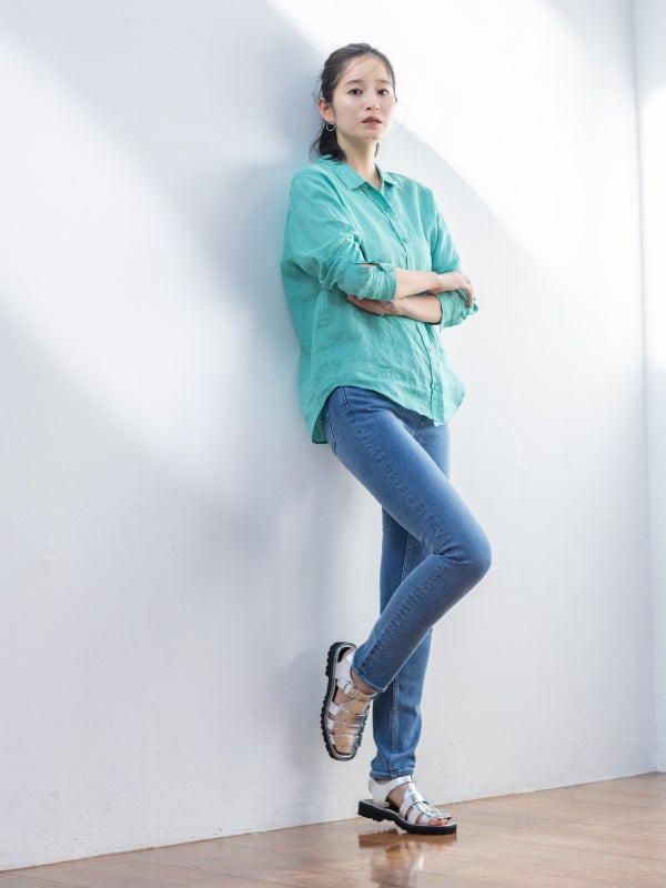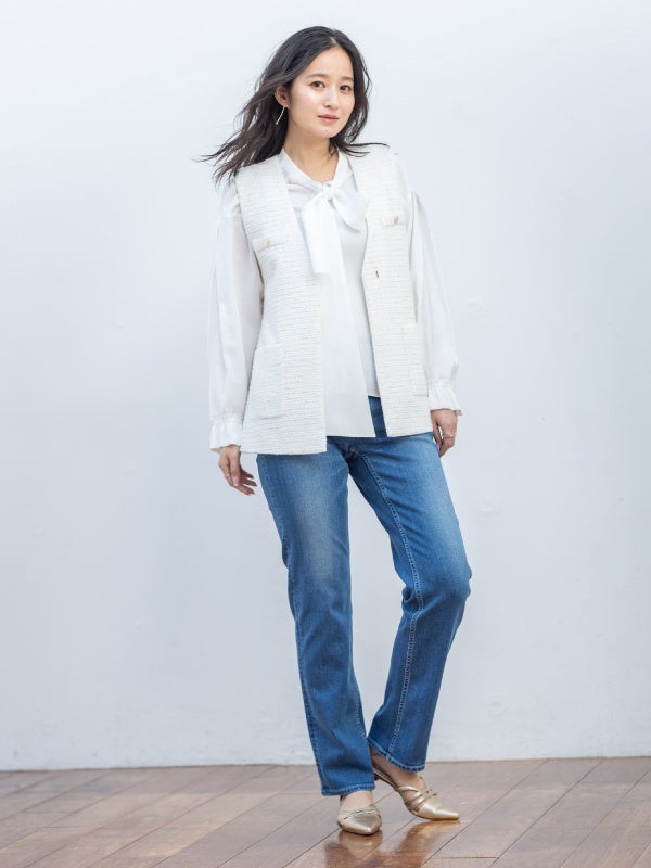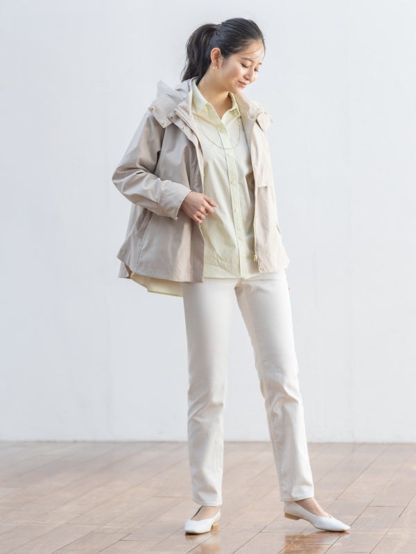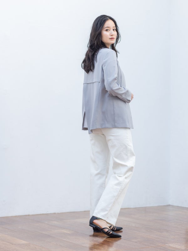 少し軽めのストレッチデニム生地を使用し、着膨れなくすっきりとした印象に仕上げました。