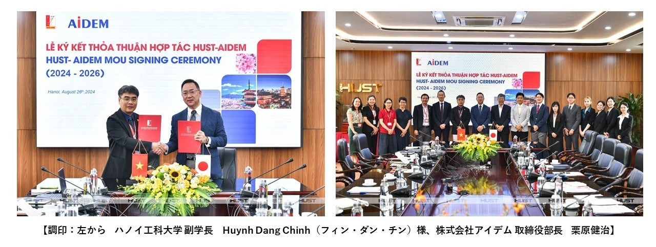 総合人材情報サービスの株式会社アイデム(東京都新宿区 代表取締役社長:椛山 亮)が展開するアイデムグローバルは、ベトナムの理工系大学トップクラスであるハノイ工科大学(Hanoi University of Science and Technology:HUST,Vietnam)と2018年より実施している協同教育プログラムに関する協定を再締結し、7回目の調印式をハノイ工科大にて執り行いましたのでお知らせいたします。