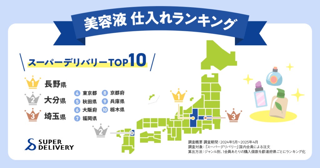 美容液の仕入れランキングでは、長野県が全国1位となりました。