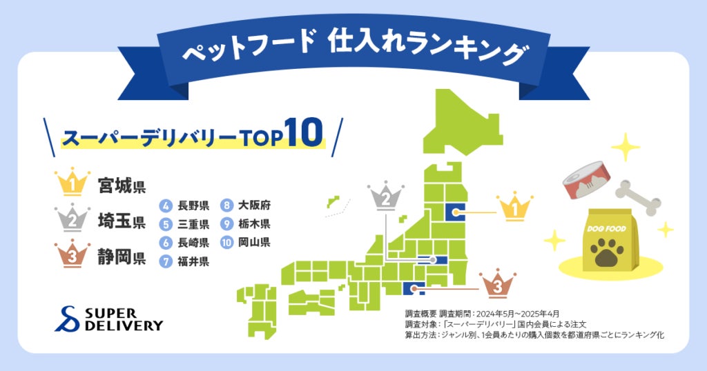 株式会社ラクーンコマース(本社:東京都中央区、代表取締役社長:和久井岳)が運営する卸・仕入れサイト「スーパーデリバリー」は、2024年5月~2025年4月の注文データをもとに、ジャンル別に仕入れ量の多かった都道府県をランキング形式でまとめたレポートを発表しました。