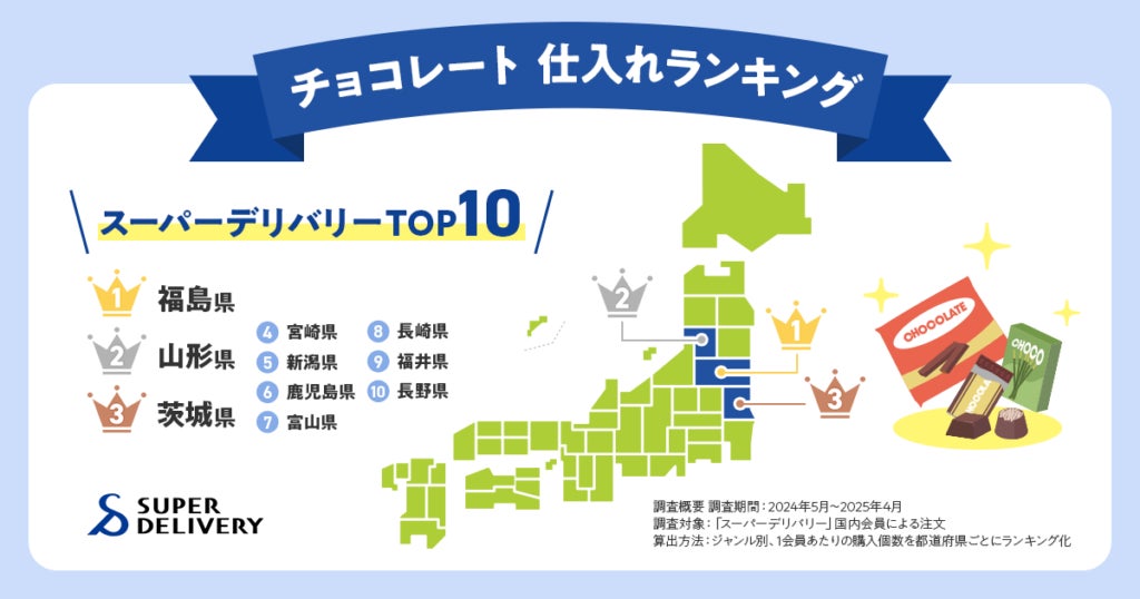 チョコレートの仕入れランキングでは、福島県が全国1位となりました。