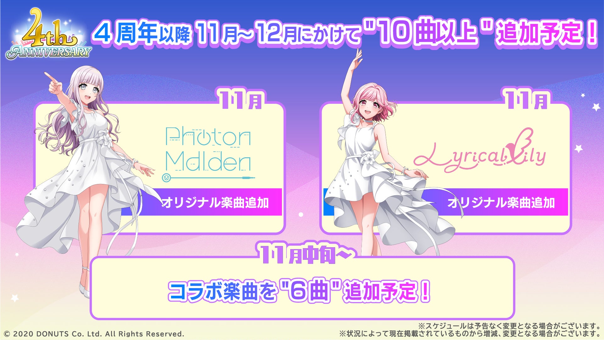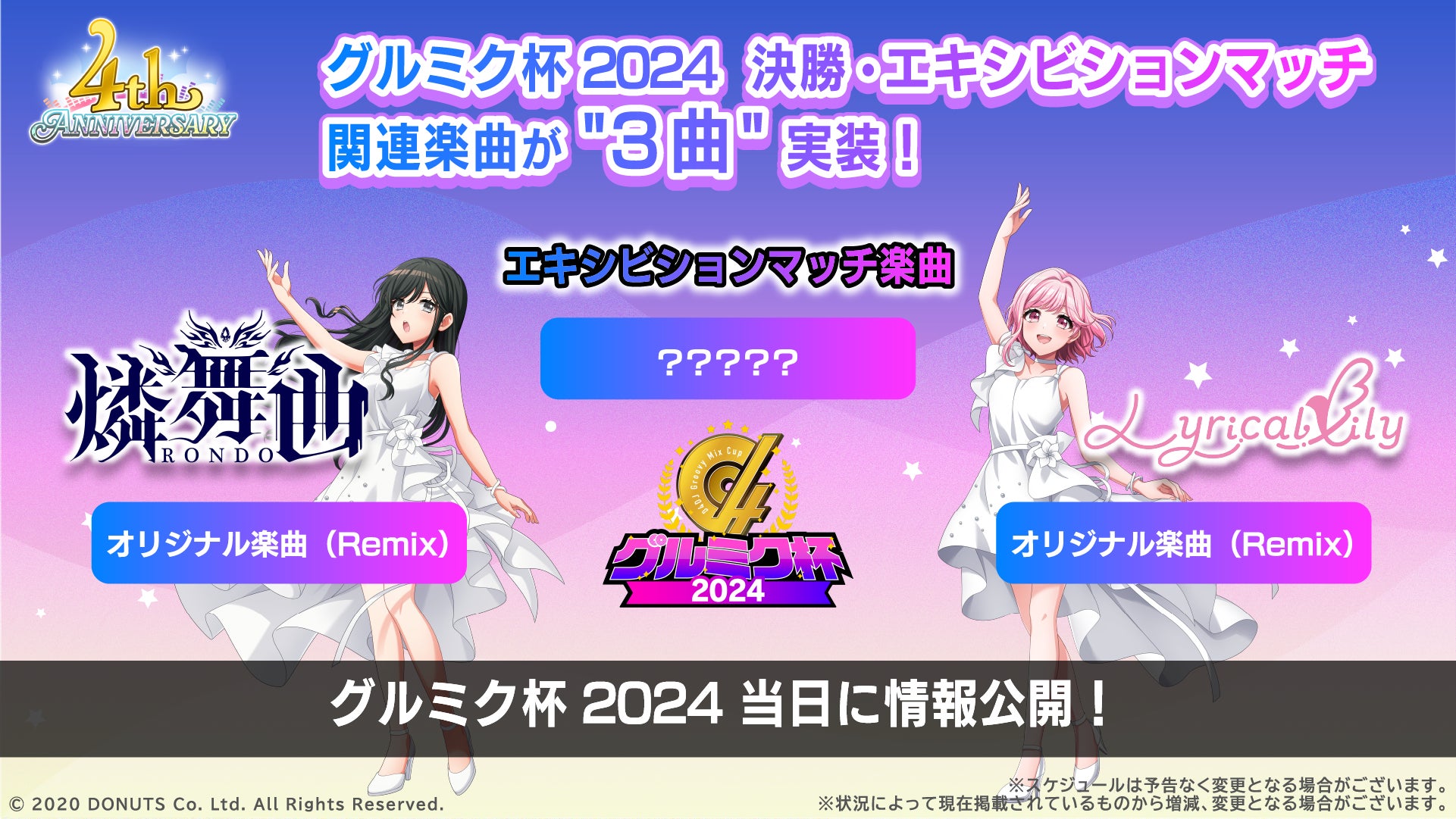 4周年を記念して、10月24日(木)から順次楽曲を追加いたします。11月~12月にかけて10曲以上の新曲が追加されるほか、「グルミク杯2024」関連楽曲も実装予定です。