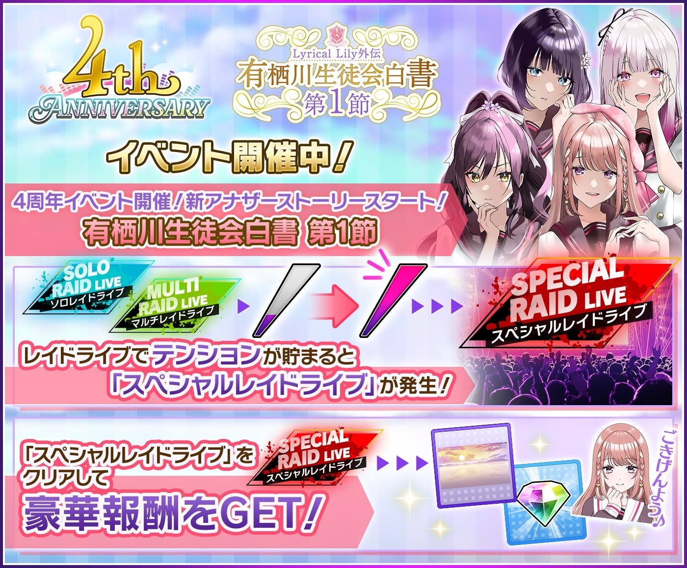 4周年記念アナザーストーリーの公開を記念し、イベント「Lyrical Lily外伝 有栖川生徒会白書」を同時開催いたします。