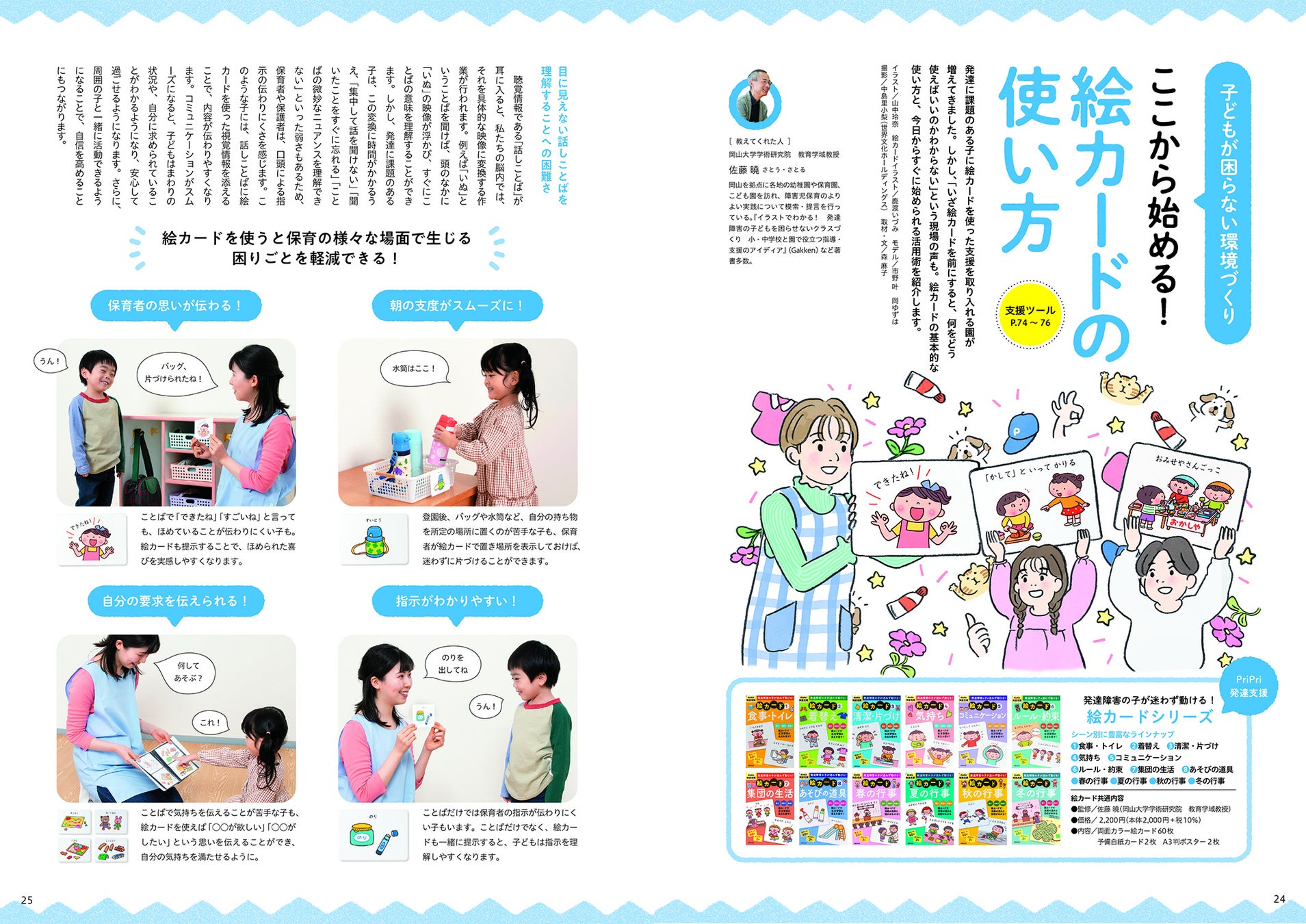季節や行事に合わせて、“今”知りたい情報を、写真やイラストをたっぷりに、わかりやすくお届けします。障害理解、視覚支援、保護者支援など、多岐にわたるテーマを網羅。毎号、コピーして使える! ダウンロード可能! ①絵カードなどの支援ツール ②めいろ・ぬりえ・パズルなどのあそび素材がついています。