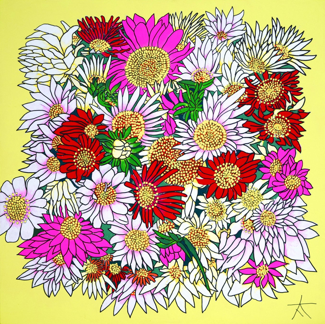 ピュアな情熱と熱い想いを胸に、絵画を通して自己を表現する障害者アーティストが「花」をテーマに描いた華やかで色鮮やかな作品を展示