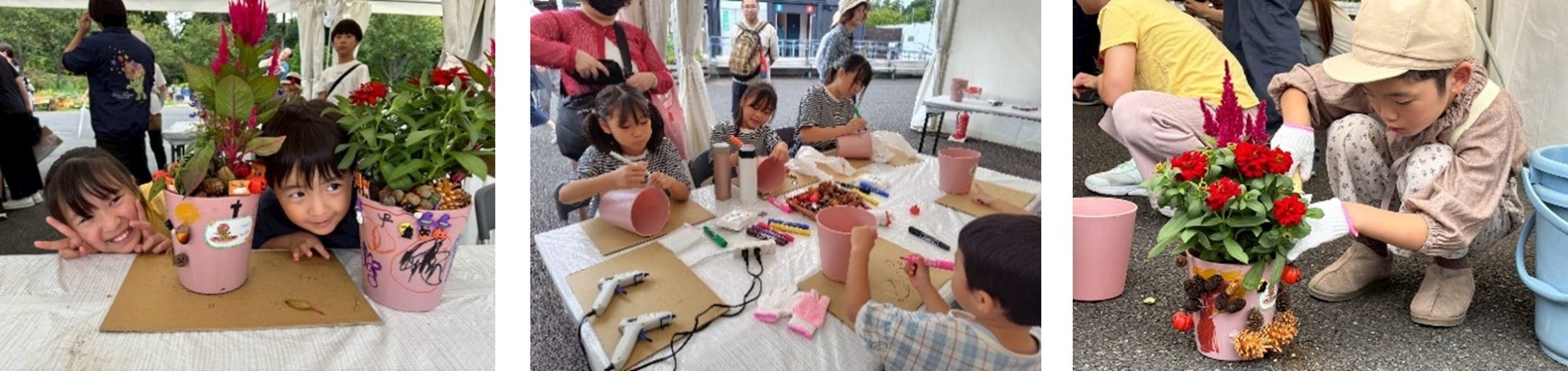 また2025年には、横浜市や千葉県船橋市とともに親子向けの「花と緑のワークショップ」を開催し、世界にひとつだけのオリジナル植木鉢づくりにも活用されました。本ワークショップは、花と緑に親しみながら環境を学べる場として好評をいただきました。
