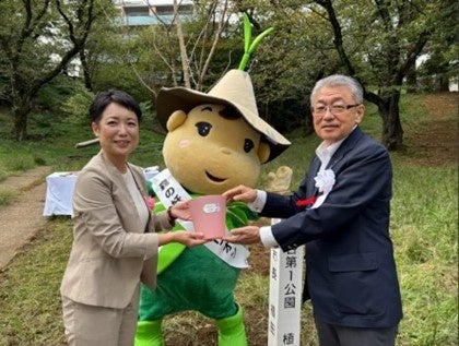 横浜市が人生の記念を祝して贈る市内産の苗木とともに植木鉢を寄贈