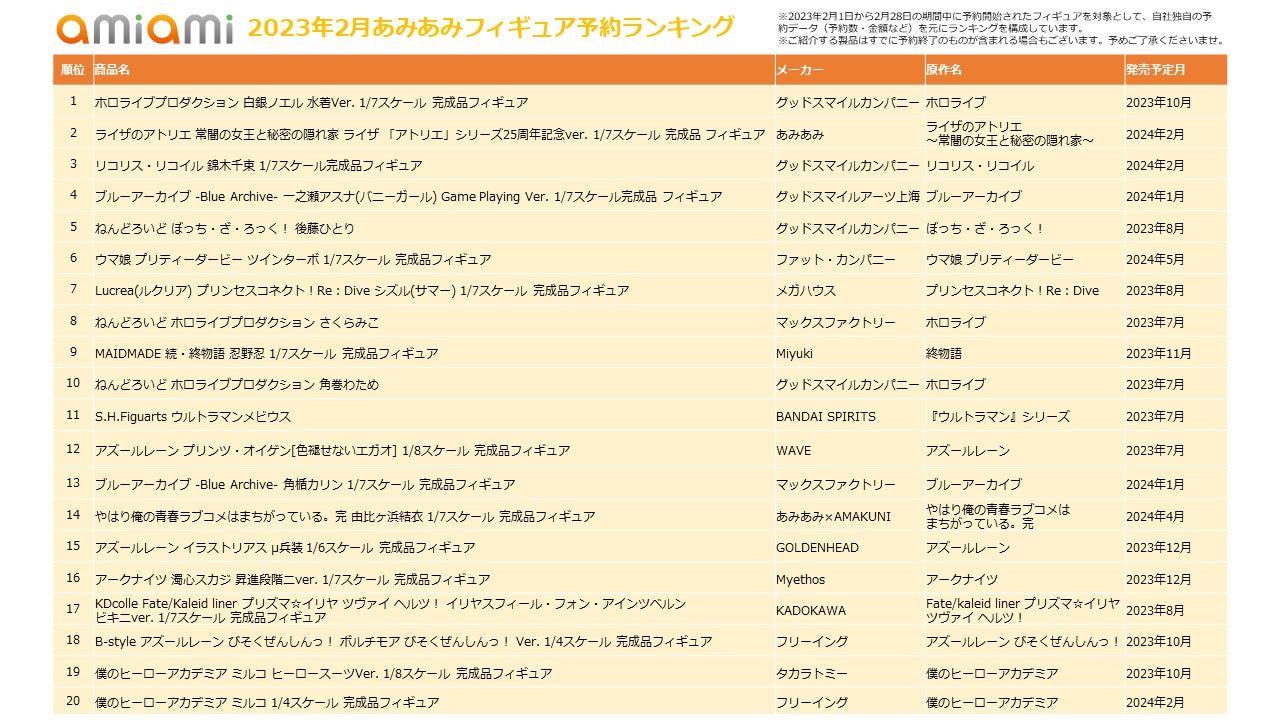 - ホビーショップ『あみあみ』の「2023年2月フィギュア予約ランキング」を発表!