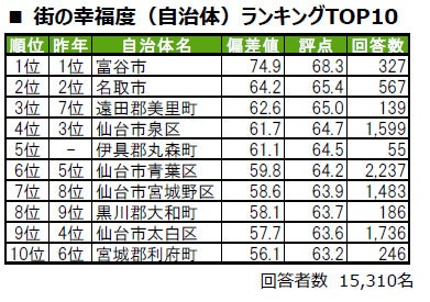 ■街の幸福度(自治体)トップは、4年連続で富谷市