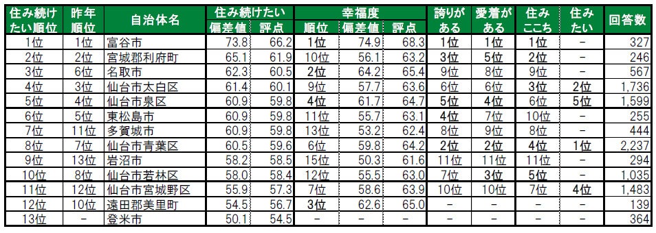 いい部屋ネット 街の幸福度&住み続けたい街ランキング2025<宮城県版>