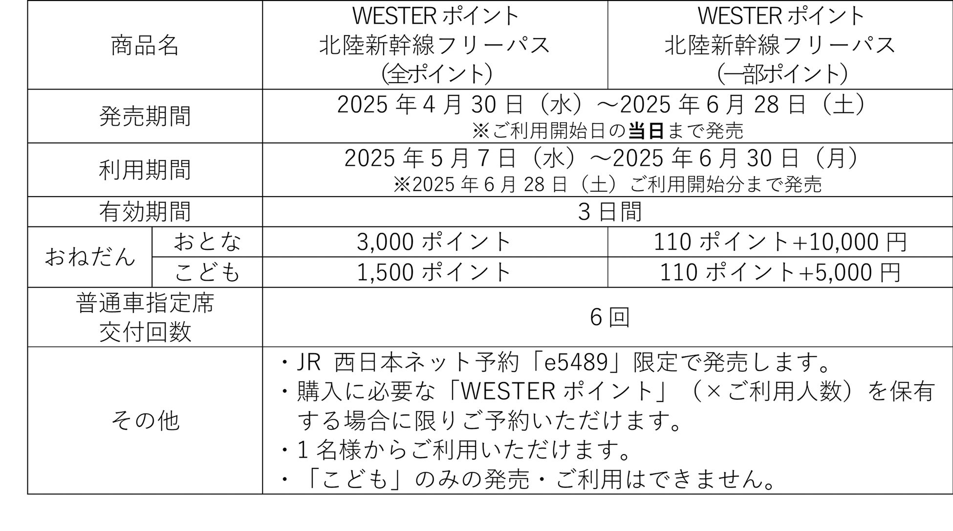 https://www.jr-odekake.net/navi/westerpoint_tetsudouriyou_gentei/ で、必ずご確認ください。