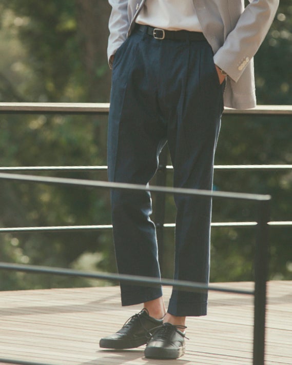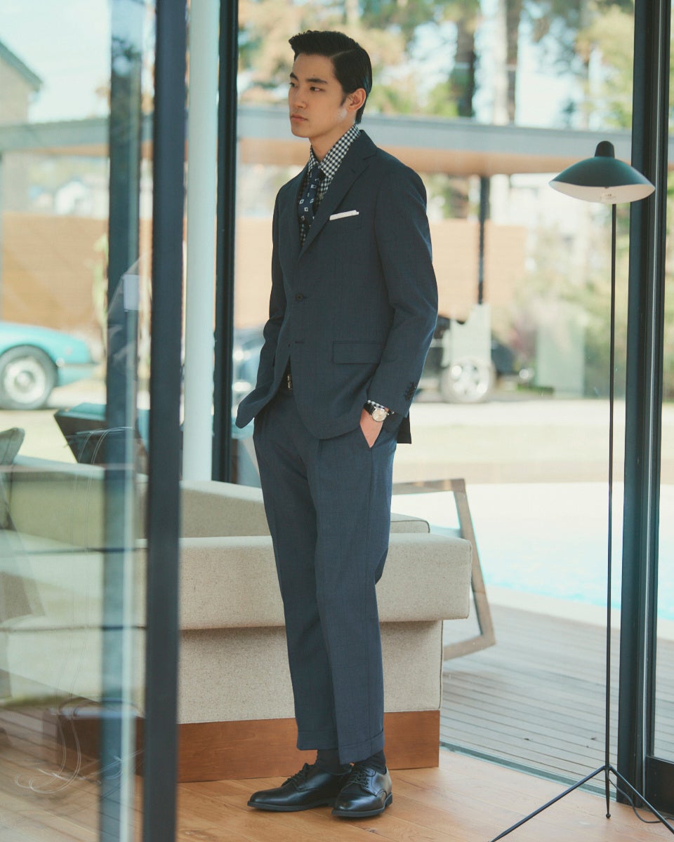 そのグローバルワークが展開する本格ドレスライン「Salon de GW(サロン ド グローバルワーク)」は、国内屈指のインターナショナルクロージングブランドである「RING JACKET(リングヂャケット)」監修の元、2021年春にデビューいたしました。国内有力セレクトショップから製造委託や別注依頼を数多く請け負ってきたブランドのノウハウと、グローバルワークの独自素材が掛け合わされ、過去2シーズンに渡ってお客さまからご好評をいただいています。今回の春夏ラインアップは、引き続き「RING JACKET(リングヂャケット)」が監修する定番のセットアップ3型に加え、新たなアイテムとしてネイビーブレザー、ニットポロシャツ、デニムスラックスを展開します。定番のスタンダードフィット、スリムフィットのセットアップには新色が加わり、リラックスフィットは春夏シーズンに最適な清涼感のあるシアサッカー素材を採用しました。その他にも金ボタンのサイズをミリ単位で調節したネイビーカラーのブレザーや、さらりとした肌触りが特徴のニットポロシャツなど、ビジネスシーンだけでなくリラックスシーンでも活躍するアイテムをラインアップしました。