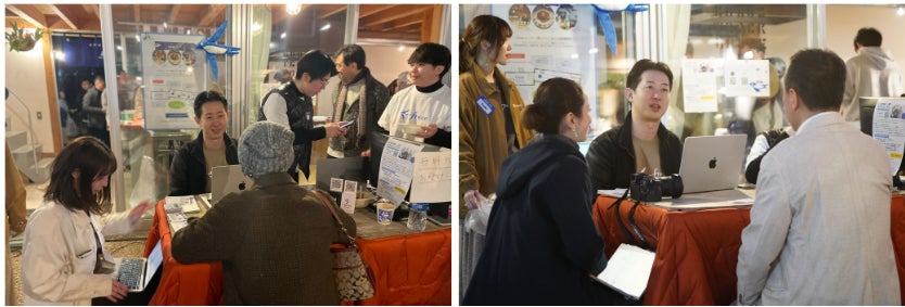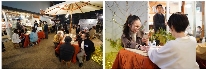 中庭では、同じテーブルになった人同士で交流したり、税理士の先生に税務相談をしたりと、熱燗を飲みながらお互いに「ゆるっと」繋がっていく様子があちこちで見られました。