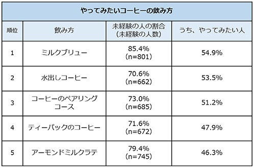 体験してみたいコーヒーの飲み方1位は「ミルクブリュー」