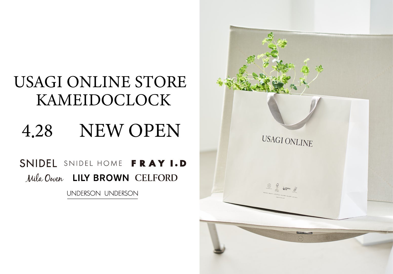 株式会社ウサギオンライン(本社:東京都千代田区 代表取締役社長:須藤 誠)が運営するオンラインデパートメントストア「USAGI ONLINE(ウサギオンライン)」は2022年4月28日(木)に、東京都江東区亀戸にオープンする商業施設『KAMEIDOCLOCK (カメイドクロック)』にリアルショップ「USAGI ONLINE STORE カメイドクロック店」をオープンいたします。東京都内では2店舗目となるUSAGI ONLINE STOREのオープンを記念し、オープン初日から4日間限定で“店内全商品10%OFF”と “5%ポイント還元”キャンペーンを同時開催します。また、ノベルティやオープン前から予約が可能なスペシャルアイテムもご用意いたします。※数量限定の為、 無くなり次第終了となります。 予めご了承ください。