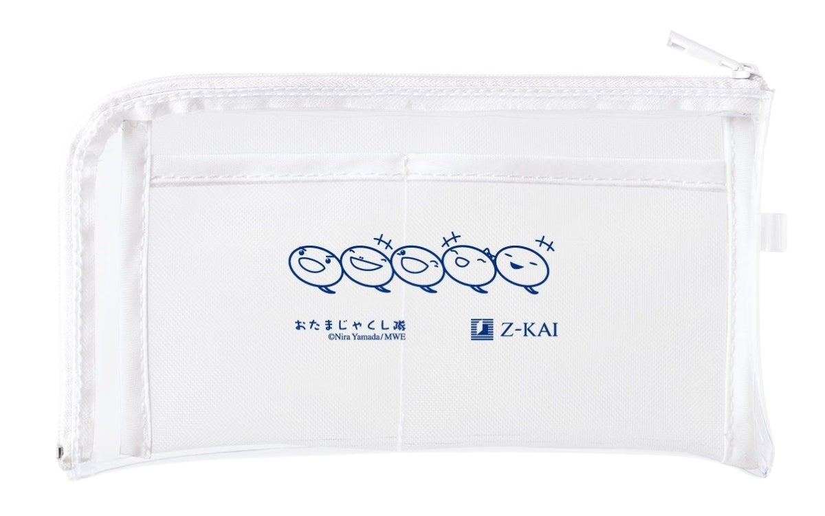 メッシュポケットがついたビニールポーチ。横長のため、ペンケースとしても使えます。Z会オリジナルキャラクターの「おたまじゃくし隊」が勉強のモチベーションを高めてくれます。